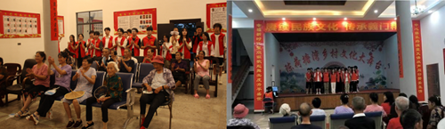 恰逢“七一”建党节这一重要节日,为了丰富村民们的精神生活,实践队在流芳乡沙岗村的文化大舞台为村民们带来了一场文艺晚会。成员们精心筹备、各展所长,从舞蹈、歌曲、到相声、情景剧,每一个节目都凝聚了队员们的辛勤汗水与不懈努力。为了庆祝“七一”建党节,实践队特别准备了一首大合唱《没有共产党就没有新中国》。当熟悉的旋律响起,不仅台上的队员们满怀深情地演唱,台下的村民们也情不自禁地跟唱起来,熟悉的歌词、激昂的旋律,让现场的氛围达到了高潮,也表达出了对党的热爱与感激之情。