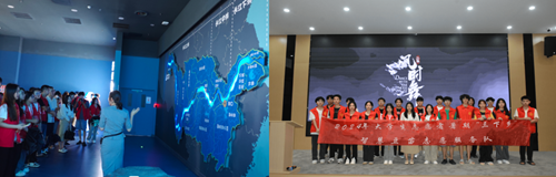 首站,实践队走进了中国·江豚湾长江鄱阳湖水生生物保护基地水族馆,深入调研基地为保护长江江豚等珍稀水生生物所采取的一系列创新举措。从开展科普教育活动,提升公众环保意识,到实施生态修复项目、改善水域生态环境——每一项措施都彰显了基地对生态保护事业的坚定承诺与不懈努力。参观结束后,实践队共同观看了以长江生态为主题的电影《江豚·风时舞》。此行不仅让实践队队员对各种水生生物有了更加全面深入的认识,更重要的是从中领悟到了人与自然和谐共生的深刻内涵,鼓励实践队成员积极传播生态保护理念,用实际行动为守护生态蓝色大海、建设美丽中国贡献自己的力量。